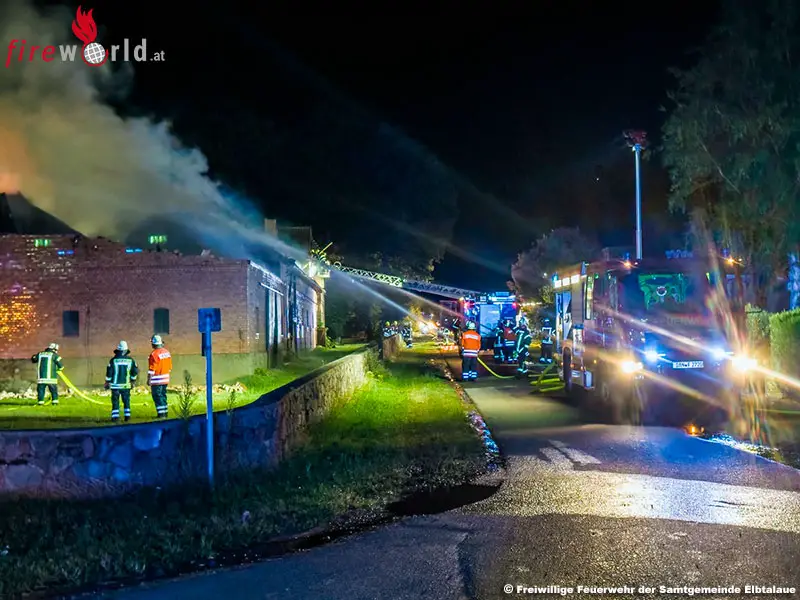 LÜCHOW-DANNENBERG (D): Ein Großaufgebot der Feuerwehr rückte in der Nacht von Mittwoch auf Donnerstag, den 17, Juli 2025, zu einem Gebäudebrand nach Reddien bei Zernien (Lk. Lüchow-Dannneberg) aus. Gegen Mitternacht ging der Notruf bei der Leitstelle ein – gemeldet wurde ein Gebäudebrand. Innerhalb kürzester Zeit waren zahlreiche Einsatzkräfte aus der gesamten Samtgemeinde Elbtalaue sowie aus dem benachbarten Landkreis Uelzen vor Ort, um den Brand zu bekämpfen und eine Ausbreitung zu verhindern.