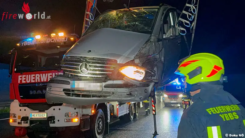 YBBS AN DER DONAU (NÖ): Am 16. Juli 2025 kam es kurz vor Mitternacht auf der Westautobahn zwischen den Anschlussstellen Ybbs und Amstetten-Ost zu einem schweren Auffahrunfall mit mehreren beteiligten Fahrzeugen. Aus bislang ungeklärter Ursache fuhr ein Sattelzug auf einen vorausfahrenden Lkw auf. Infolge des Aufpralls verriss der Lenker des auffahrenden Lkws sein Fahrzeug nach links und drückte dabei einen neben ihm fahrenden Pkw zwischen den Lkw und die Mittelbetonwand.