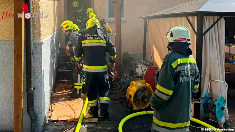 HAUSMENING (NÖ): Am 18. Juli 2015 wurden die Feuerwehren Ulmerfeld-Hausmening, Neuhofen, Winklarn und die Betriebsfeuerwehr Mondi-Neusiedler zu einem Brand der Kategorie B2 in Hausmening alarmiert. Insgesamt 52 Feuerwehrmitglieder rückten aus, nachdem eine Verpuffung nach Arbeiten in einem Keller eines Einfamilienhauses gemeldet worden war.