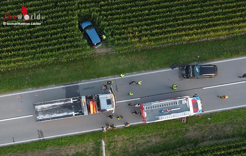 LAMBACH (OÖ): Eine Schwerstverletzte und zwei leicht verletzte Personen hat am Samstagabend, 19. Juli 2025, ein Unfall mit insgesamt vier beteiligten Pkw auf der B1 Wiener Straße in Lambach (Bezirk Wels-Land) gefordert.