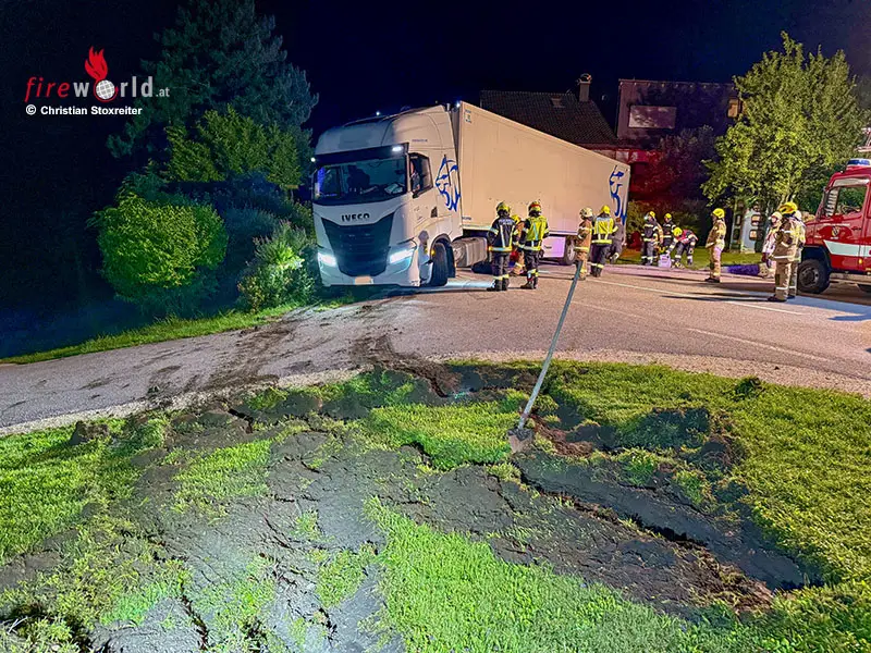 Oö: Zwei Feuerwehren und Lkw-Fahrer bergen versunkenen Lkw aus Spanien