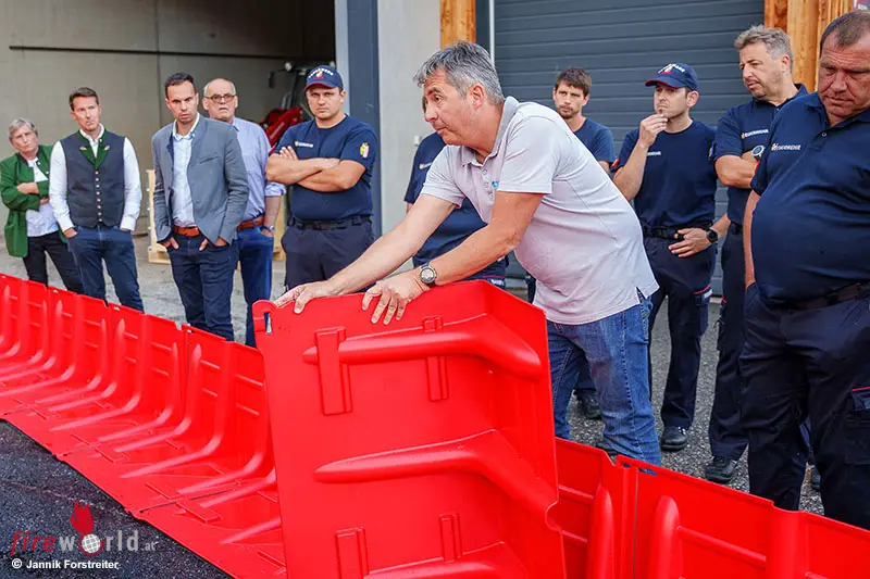„Im Namen der Feuerwehren gilt mein besonderer Dank all jenen, die für die Finanzierung der insgesamt 400 Meter Hochwasserschutz gesorgt haben““ freut sich Pflichtbereichskommandant Claus Ebner über die neue Ausrüstung für den Bevölkerungsschutz.