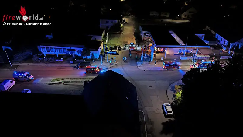 MAISSAU (NÖ): Nach den zahlreichen Unwettereinsätzen wurde die Freiwillige Feuerwehr Maissau am späten Abend des 24. Juli 2025 erneut alarmiert. Das Einsatzstichwort lautete: B3 – Gewerbebrand bei der Shell-Tankstelle Maissau.