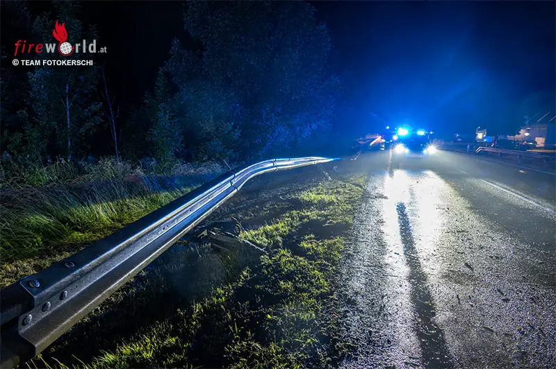 In weiterer Folge schleuderte der Pkw zurück, prallte gegen die rechte Leitplanke und kam erst nach rund 120 Metern zum Stillstand – nachdem er sich mehrmals um die eigene Achse gedreht hatte, entgegen erster Meldungen war niemand im Fahrzeug eingeklemmt. Drei Personen – der Lenker sowie zwei Mitfahrende – befanden sich im Fahrzeug. Alle wurden vom Rettungsdienst versorgt und zur medizinischen Kontrolle ins Krankenhaus gebracht.