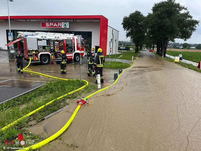 In etlichen Haidershofner Haushalten mussten Keller ausgepumpt, Verklausungen gelöst und Straßen gesperrt werden. Auch der mobile Hochwasserschutz NOAQ Boxwell ist aufgestellt worden, um Objekte zu schützen. Bei der Bezirksalarmzentrale sind etliche Notrufe eingegangen, die Feuerwehren sind vor Ort.