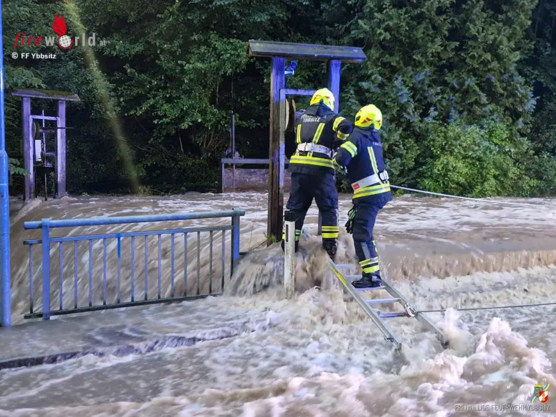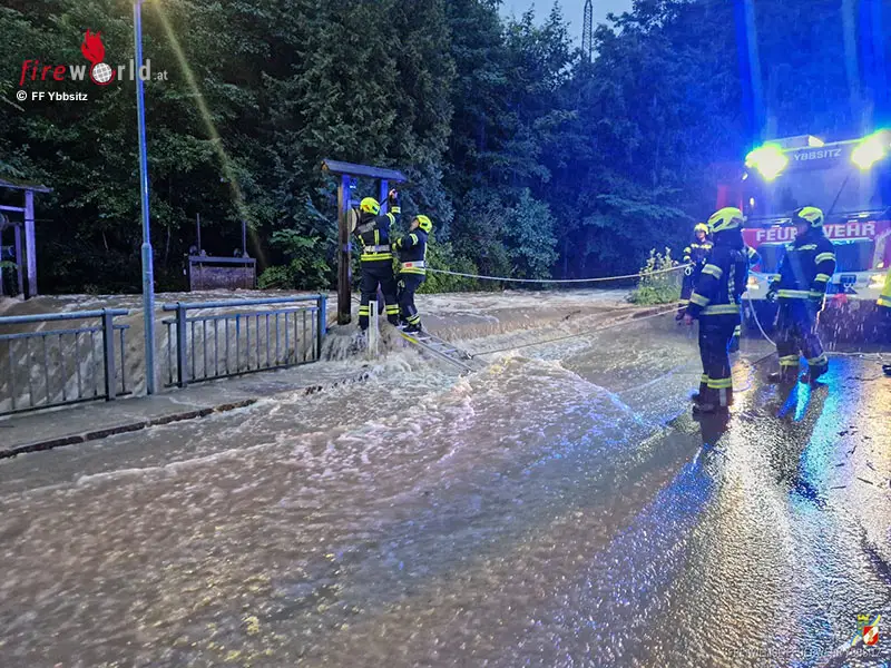 Starke Regenfälle führten in den frühen Morgenstunden des 27. Juli zu kleinräumigen Straßenüberflutungen in Ybbsitz. Um 05 Uhr Früh war im Bereich Noth die Landesstraße überschwemmt, um 05:30 Uhr wurde Sirenenalarm ausgelöst, um die Ybbsitzer Bevölkerung auf die stark ansteigenden Pegelstände aufmerksam zu machen.