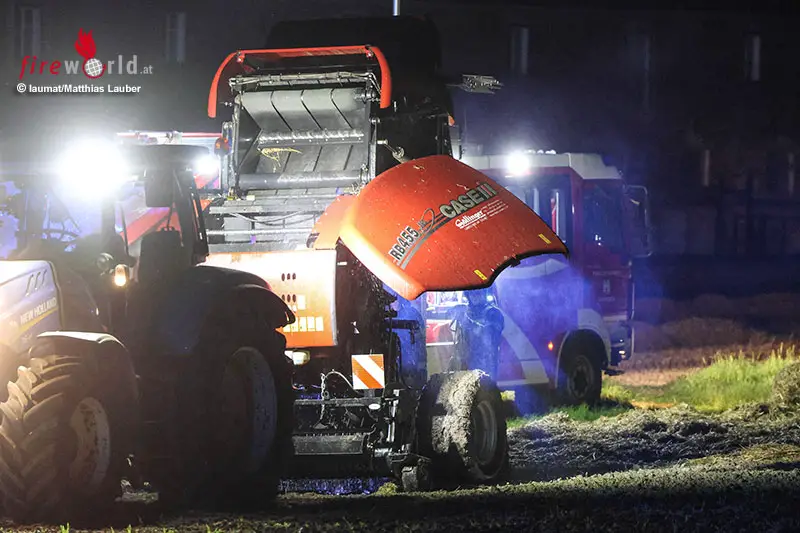 OFFENHAUSEN (OÖ): In Offenhausen (Bezirk Wels-Land) wurden am späten Samstagabend, 9. August 2025, zwei Feuerwehren zu einem Brand einer Rundballenpresse alarmiert.