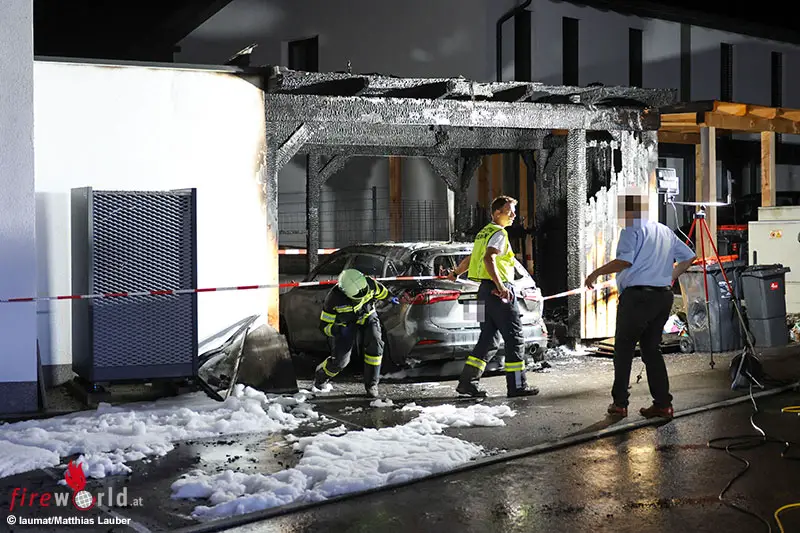 OTTNANG AM HAUSRUCK (OÖ): In Ottnang am Hausruck (Bezirk Vöcklabruck) ist es am späten Montagabend, 11. August 2025, zu einem Einsatz von fünf Feuerwehren gekommen, nachdem ein Pkw mitsamt Carport brannte.