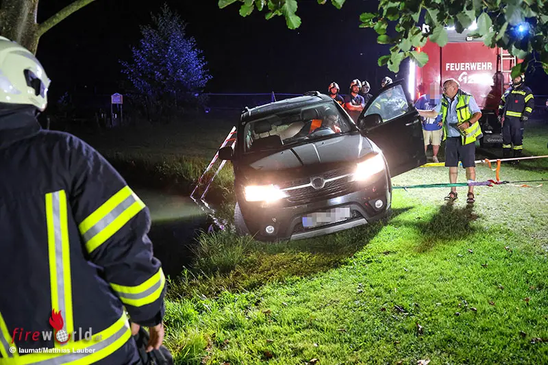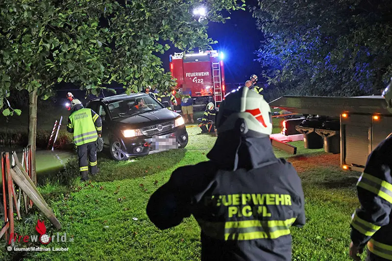 PICHL (OÖ): In Pichl bei Wels (Bezirk Wels-Land) drohte am späteren Mittwochabend, 13. August 2025, ein Pkw in einen Fischteich zu stürzen. Die Feuerwehr sicherte das Fahrzeug.