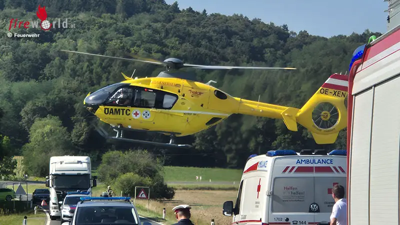 Ein Lkw und ein Pkw waren aus bisher ungeklärter Ursache kollidiert. Der Lenker des Pkw wurde dabei im Fahrzeug eingeklemmt. Unter Einsatz von hydraulischem Rettungsgerät konnte die verletzte Person aus dem Wrack befreit werden. Anschließend wurde der Verletzte vom Rettungshubschrauber Christophorus 16 in den Schockraum des LKH Graz geflogen.