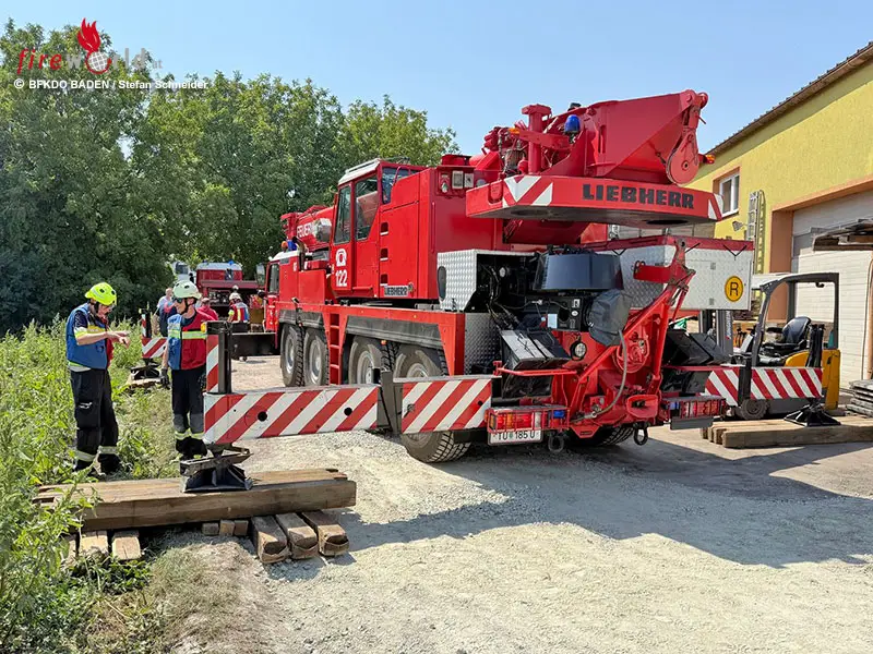 In den Mittagsstunden des 13. August 2025 wurde daraufhin die örtliche Freiwillige Feuerwehr Tribuswinkel zu einem T1 Bergung-Großfahrzeug alarmiert. Bei der Erkundung durch den Feuerwehreinsatzleiter Kommandant Stefan Mitheis stellte sich jedoch rasch heraus, dass die Bergung des Schwerfahrzeuges mit eigen Mitteln, aufgrund der vorgefundenen Lage, nicht möglich war.