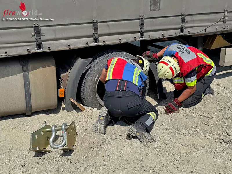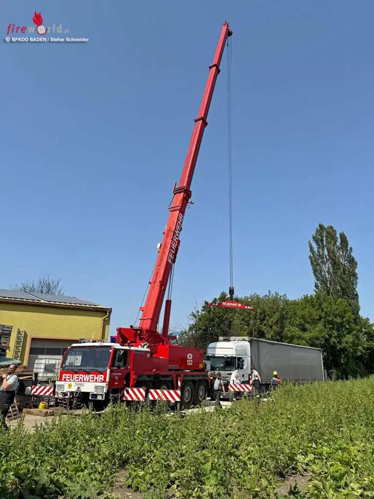 Nö: Kraneinsatz wegen festgefahrenen Lkw-Sattelzug in Tribuswinkel / Traiskirchen
