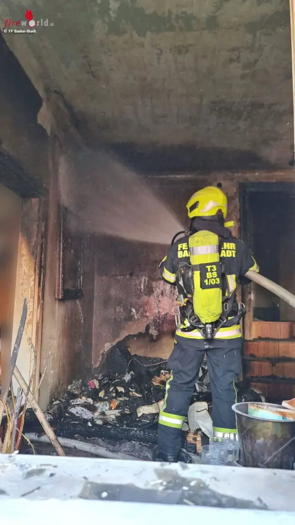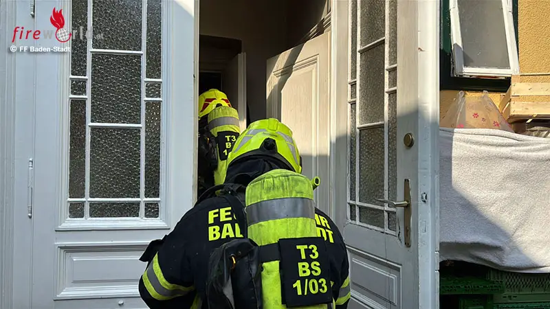 BADEN (NÖ): Am Samstag, den 16. August 2025, wurde die Freiwillige Feuerwehr Baden-Stadt um 08:09 Uhr zu einem „B2 Gebäudebrand – Innenraum“ alarmiert. Dadurch dass die Drehleiter zum Zeitpunkt der Alarmierung auf einer Ausbildungsfahrt war, konnte diese innerhalb weniger Minuten vor Ort sein und erste Sicherungsmaßnahmen gemeinsam mit der Bundespolizei durchführen.