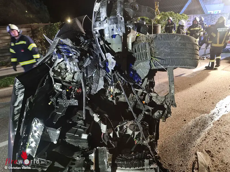 Am Einsatzort angekommen konnte zum Glück schnell Entwarnung gegeben werden. Entgegen der ersten Meldung „Auto überschlagen, Lenker noch im Fahrzeug“ hatte der Insasse das völlig beschädigte und auf der Seite liegende Fahrzeug bereits selbstständig verlassen. Der Fahrer wurde von den Sanitätern des Rote Kreuzes erstversorgt. Die Florianis stellten das Auto mit dem Kran wieder auf die Räder und übergaben es an einen Abschleppdienst.