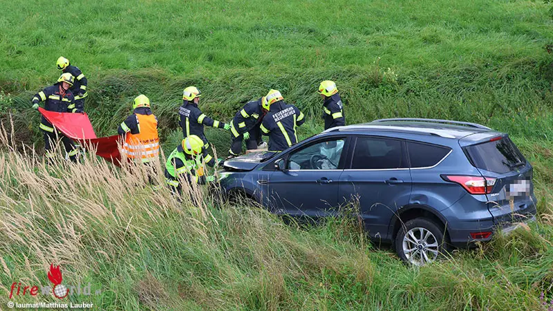 NEUKIRCHEN BEI LAMBACH (OÖ): In Neukirchen bei Lambach (Bezirk Wels-Land) ist am Sonntagnachmittag, 17. August 2025, ein Auto bei einem Unfall von der Straße abgekommen und in einem Bachbett gelandet.
