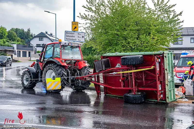 Oö: Umgekippter Anhänger sorgt für Feuerwehreinsatz in Vorchdorf