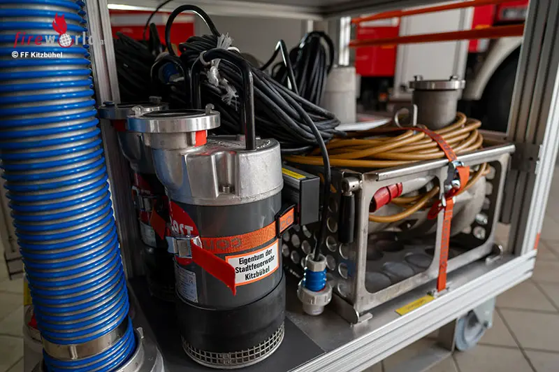 Zum Lieferumfang gehören auch das entsprechende Zubehör, Kabeltrommeln, Schläuche und Wathosen. Damit ist der Container bestens für Unwettereinsätze und Überflutungen gerüstet.