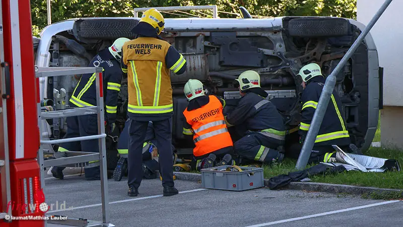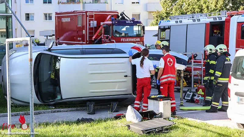 Oö: Lenkerin nach Parkplatzunfall in Wels aus Auto in Seitenlage befreit