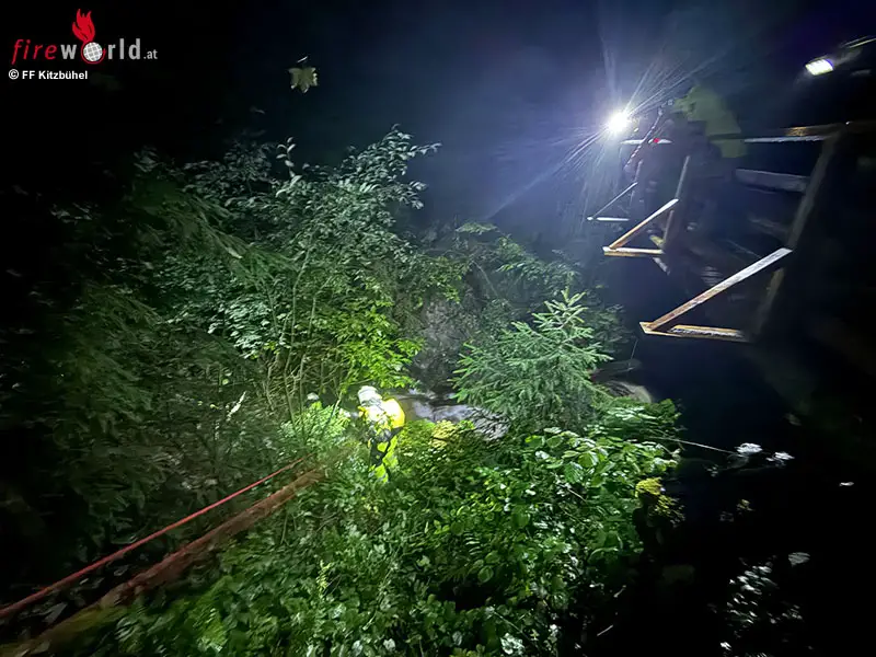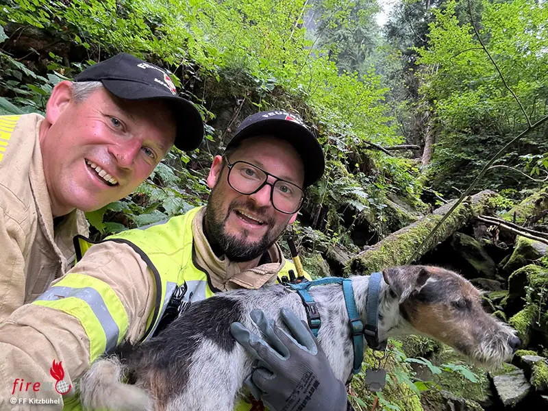 Der Vierbeiner war seiner Besitzerin, einer Urlauberin in Kitzbühel, bereits am Nachmittag entlaufen. Umgehend rückten die Einsatzkräfte mit Mehrzweckfahrzeug, Schwerem Rüstfahrzeug und Kommandofahrzeug aus. Unter widrigen Bedingungen durchkämmten mehrere Feuerwehrmitglieder, gesichert mit Seilen, den Bachlauf.