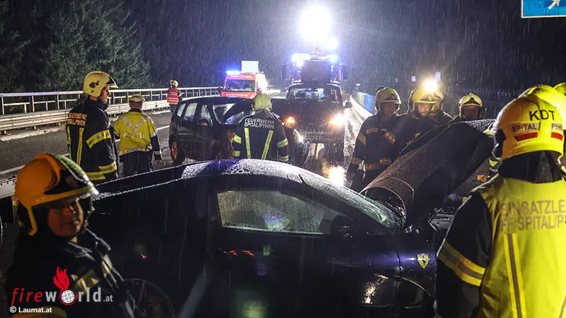 Der Unfall passierte am späten Donnerstagabend auf der A9 Pyhrnautobahn im Gemeindegebiet von Spital am Pyhrn. Aus noch unbekannten Gründen ist es auf regennasser Fahrbahn in Fahrtrichtung Graz, zwischen der Autobahnauffahrt Spital am Pyhrn und dem Bosrucktunnel beziehungsweise der Landesgrenze zur Steiermark, zu einem heftigen Crash gekommen.