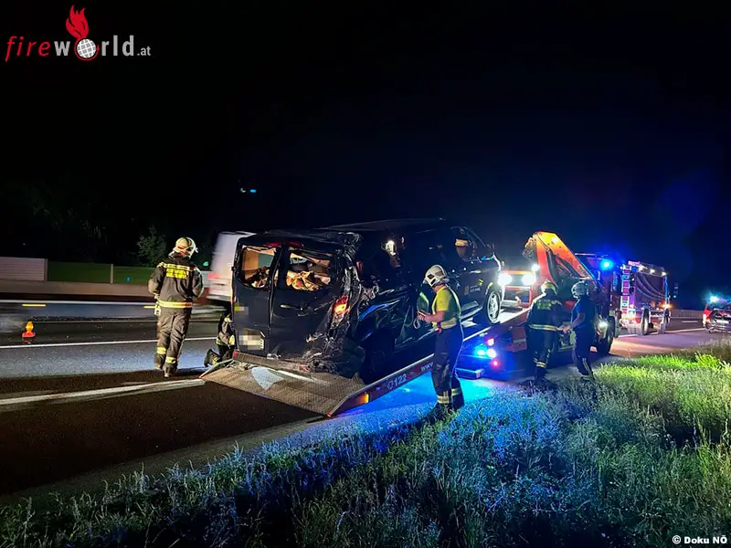 GIESSHÜBL (NÖ): Am späten Sonntagabend, dem 24. August 2025, kam es kurz vor Mitternacht auf der Autobahn A21 in Fahrtrichtung Steinhäusl bei Gießhübl zu einem folgenschweren Auffahrunfall. Aus bislang ungeklärter Ursache kollidierte ein Lkw mit einem Kleinbus. Die Rettungsleitstelle Notruf Niederösterreich alarmierte umgehend mehrere Rettungsmittel sowie einen Notarzt zum Unfallort. Auch die Feuerwehr wurde aufgrund einer zunächst vermuteten Menschenrettung verständigt.