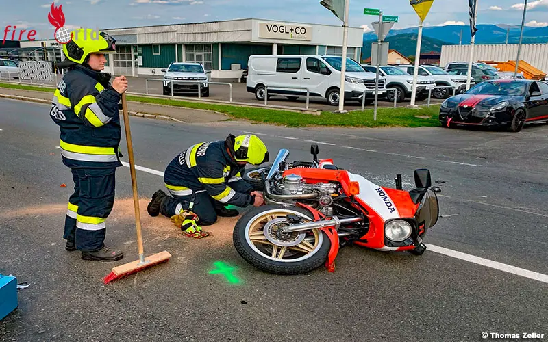 Stmk: Verkehrsunfall zwischen Motorrad und Pkw in Knittelfeld