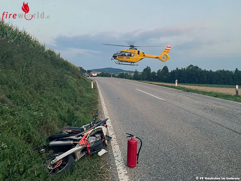 Aus bisher unbekannter Ursache kollidierte ein Motorrad mit einem Pkw, wodurch der Motorradlenker schwer verletzt wurde. Die 22 Einsatzkräfte der Feuerwehr Neuhofen sicherten umgehend die Unfallstelle ab und unterstützten das Rote Kreuz bei der Erstversorgung des Verletzten. Nach der notärztlichen Behandlung vor Ort wurde der Motorradlenker vom Rettungshubschrauber Europa 3 zur weiteren Versorgung abtransportiert.