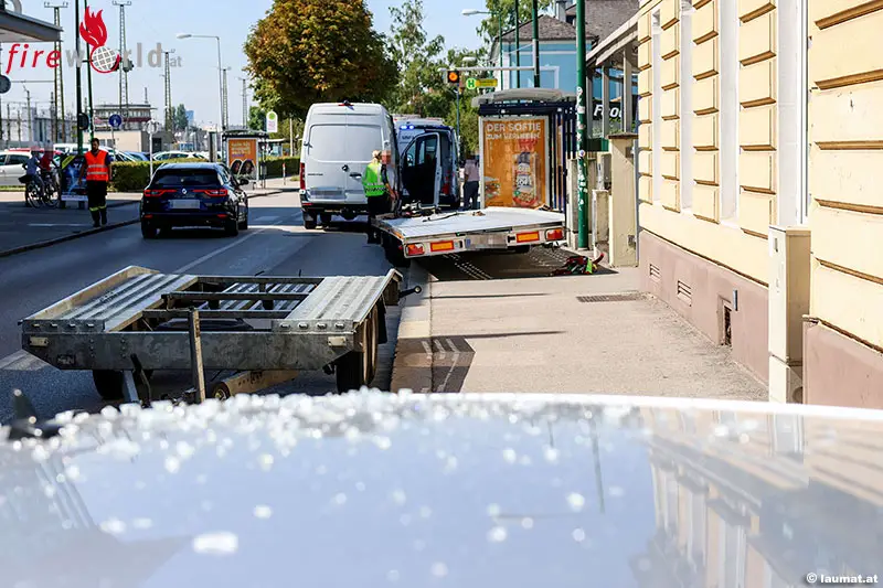 Ein Autotransporter samt Anhänger, welcher einen Pkw und einen Anhänger auf seinem Anhänger aufgeladen hatte, rammte ein Buswartehäuschen beim Welser Hauptbahnhof. Eine Person musste vom Rettungsdienst aufgrund von Schnittverletzungen versorgt werden, eine weitere Person erlitt vermutlich einen Schock und wurde mit Kreislaufbeschwerden ebenso ins Klinikum Wels eingeliefert.