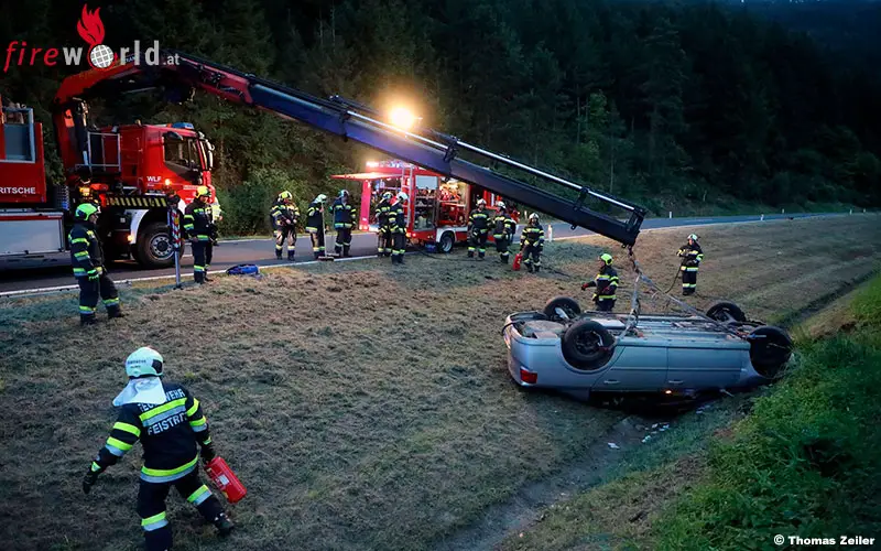 SANKT MAREIN-FEISTRITZ (STMK): Am Abend des 27. August 2025 kam es in der Gemeinde St. Marein-Feistritz zu einem Verkehrsunfall, bei dem sich ein Pkw überschlug. Die Feuerwehren Feistritz, Kobenz, Knittelfeld und St. Marein bei Knittelfeld wurden gegen 19.25 Uhr zu der Unfallstelle auf der Landesstraße L518 alarmiert.