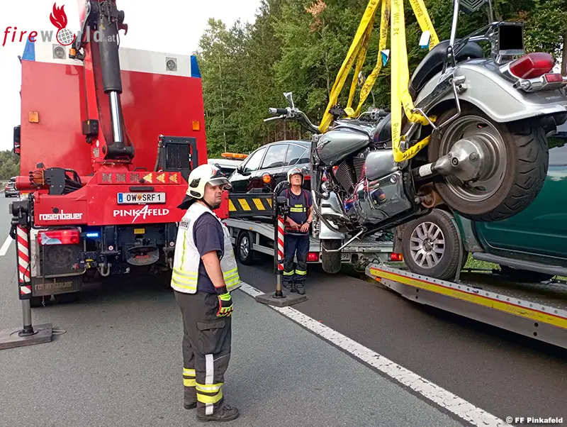 Aus ungeklärter Ursache war ein Motorradfahrer auf der Südautobahn zu Sturz gekommen. Er erlitt dabei Verletzungen unbestimmten Grades. Der verletzte Motorradfahrer wurde bis zum Eintreffen des Rettungsdienstes von Sanitätern der Feuerwehr versorgt. Anschließend wurde er in die Klinik Oberwart eingeliefert. Die Feuerwehr Pinkafeld sicherte parallel zu den Rettungsarbeiten die Unfallstelle ab, stellte den Brandschutz sicher und führte im Anschluss an die Erhebungen der Exekutive die Bergung des Motorrades durch.