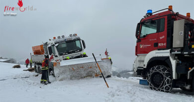 Nach der polizeilichen Freigabe wurde das Unfallfahrzeug von der Feuerwehr geborgen. Mit einem Kran hoben die Einsatzkräfte den Pkw auf ein Wechselladerfahrzeug und transportierten ihn von der Unfallstelle ab.