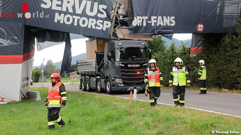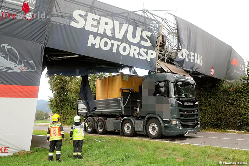 SPIELBERG (STMK): Am 29. August 2025 kam es in der Gemeinde Spielberg zu einem nicht alltäglichen Verkehrsunfall. Gegen 13.40 Uhr kollidierte ein Lkw auf der L503 mit einer Fußgängerbrücke. 15 Mann der Feuerwehr Spielberg waren gemeinsam mit der Polizei binnen weniger Minuten am Einsatzort. Mit schwerem Gerät konnte die Brücke gehoben und vvom Lkw entfernt werden.