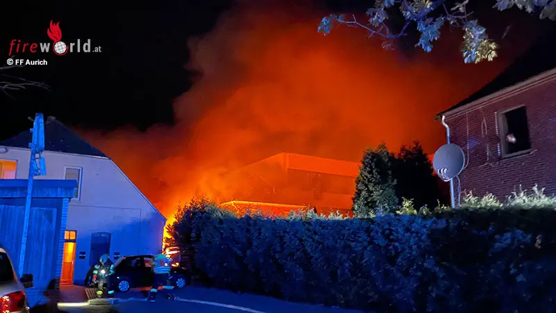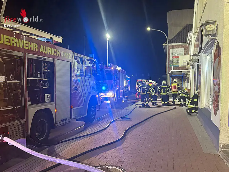 AURICH (DEUTSCHLAND): Den Brand eines Gebäudes haben Einsatzkräfte der Feuerwehren Aurich, Sandhorst und Walle in der Nacht zu Sonntag, 31. August 2025, gerade noch abwenden können. Gegen 04:55 Uhr wurde der Wittmunder Regionalleitstelle ein bereits größeres Feuer in der Lambertistraße gemeldet.