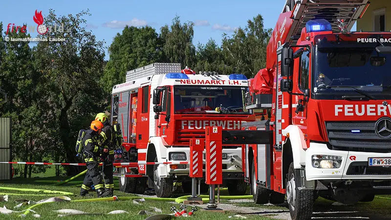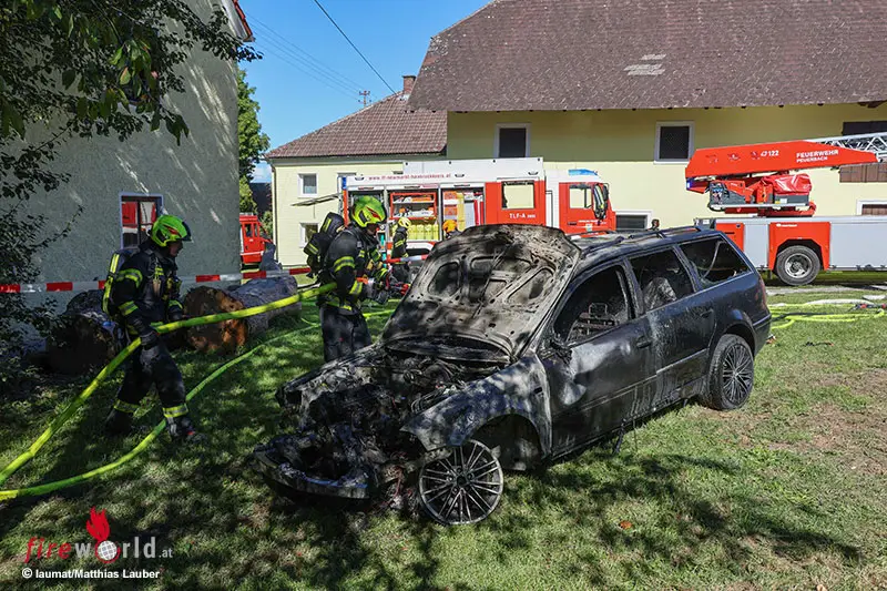 TAUFKIRCHEN AN DER TRATTNACH (OÖ): Ein Brand eines Pkw in einem Nebengebäude in Taufkirchen an der Trattnach (Bezirk Grieskirchen) hat am Sonntagnachmittag, 31. August 2025, ein größeres Aufgebot an Feuerwehren beschäftigt.