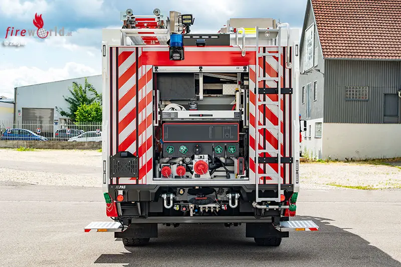 Die integrierte Feuerlöschkreiselpumpe FPN 10-2000-1H in Kombination mit einem 1.200 Liter fassenden Löschwasserbehälter mit Trinkwasserschutz garantiert eine zuverlässige Wasserversorgung in jeder Lage. Eine auf einem Hublift gelagerte Tragkraftspritze Ultra Power ergänzt die Ausstattung praxisgerecht.
