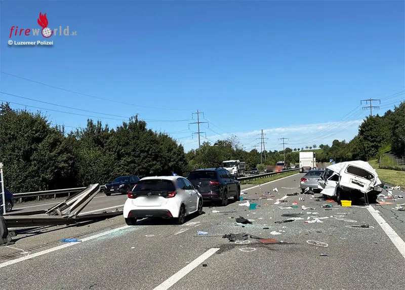 BUCHRAIN (SCHWEIZ): Am Mittwochnachmittag, dem 3. September 2025, ereignete sich auf der A14 bei Buchrain ein Unfall mit einem Todesopfer und acht Verletzten.