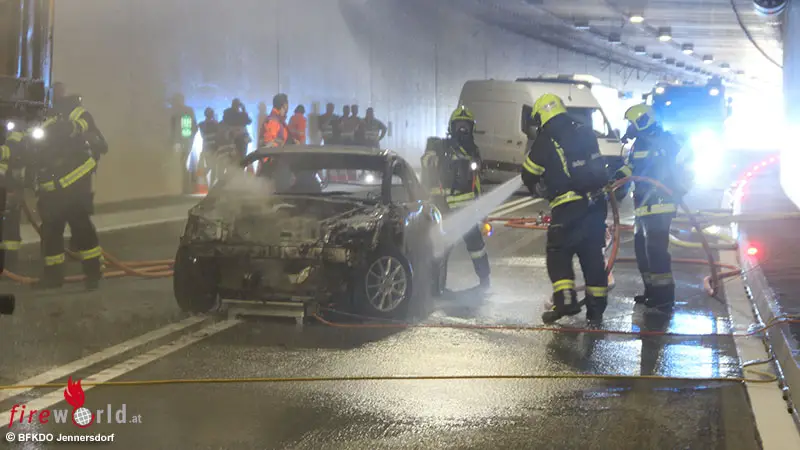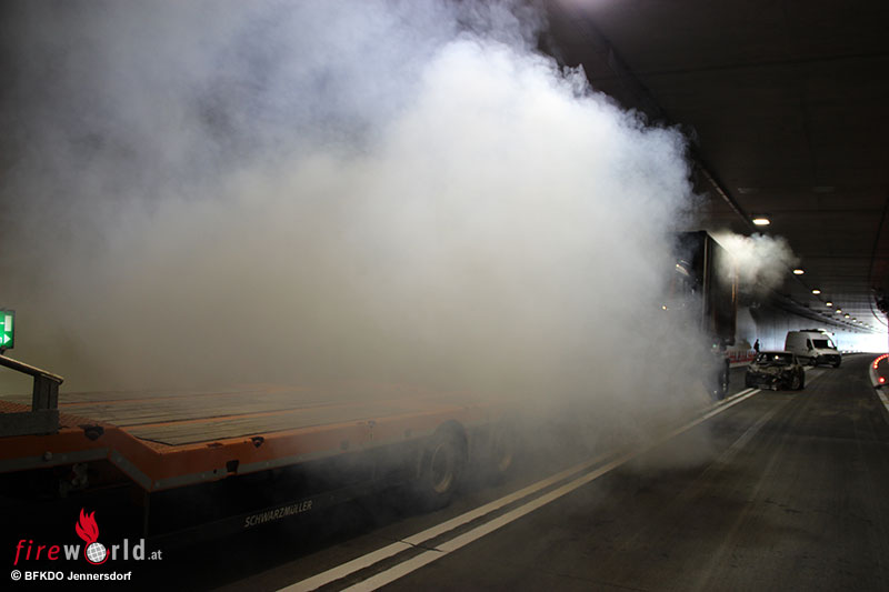 Via Notrufmeldung wurden Rettung und Polizei verständigt, um den medizinischen Notfall abzuarbeiten. Ein Fahrzeugbrand wird durch die Auslösung der Brandlinienmelder detektiert und via Kontrolle über die Kameras bestätigt. Über die Überwachungszentrale (ÜZ) Plabutsch wird die Alamierung B3 für die Unterflurtrasse Königsdorf via LSZ Burgenland ausgelöst.