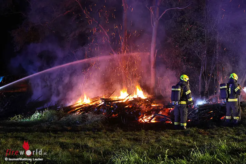 STEINHAUS BEI WELS (OÖ): In Steinhaus (Bezirk Wels-Land) standen die Einsatzkräfte zweier Feuerwehren am späten Mittwochabend, 3. September 2025, bei einem Brand eines Holzstoßes im Einsatz.