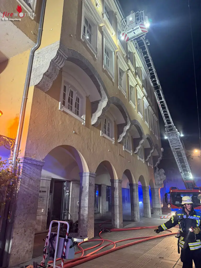 AUGSBURG (BAYERN): Am späten Donnerstagabend den 11. September 2025 gegen 22:03 Uhr wurden die Einsatzkräfte der Berufsfeuerwehr Augsburg zu einem Kellerbrand in die Augsburger Innenstadt gerufen. Laut Aussage des Mitteilers habe er einen lauten Knall gehört und anschließend eine starke Rauchentwicklung aus einem Lichtschacht feststellen können.