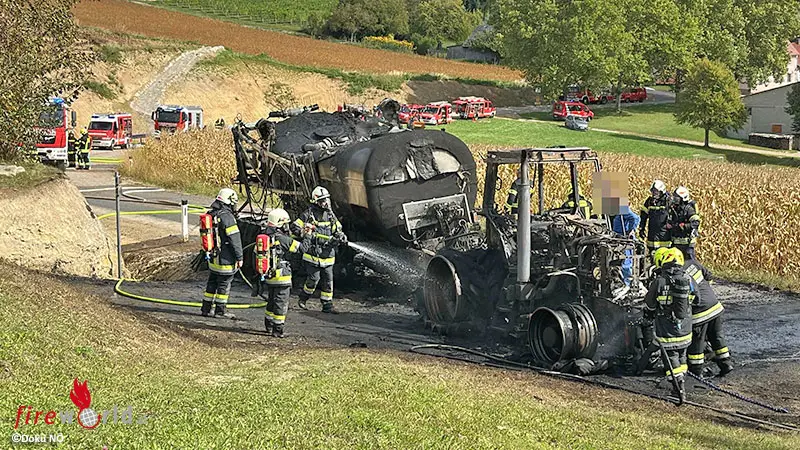 INZERSDORF-GETZERSDORF (NÖ): Am Vormittag des 17. September 2025 meldete ein Anrufer der Feuerwehralarmzentrale St. Pölten, dass sein Traktor in Anzenberg (Gemeinde Inzersdorf-Getzersdorf) in Flammen stehen würde. Aufgrund der Meldung wurde umgehend Alarmstufe Brand 2 ausgelöst.