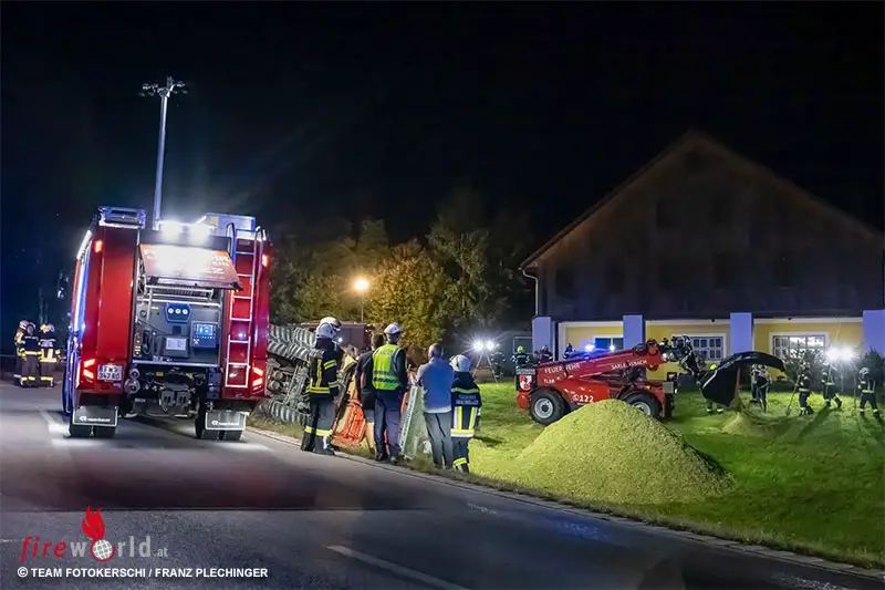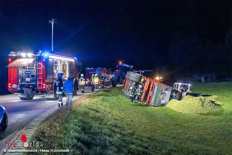 Das landwirtschaftliche Gespann kippte aus bislang unbekannter Ursache um. Ein Teil der geladenen Ernte verteilte sich dabei auf eine angrenzende Wiese. Die Feuerwehr Sprinzenstein sowie weitere Einsatzkräfte wurden alarmiert und standen bis in die Nachtstunden im Einsatz.