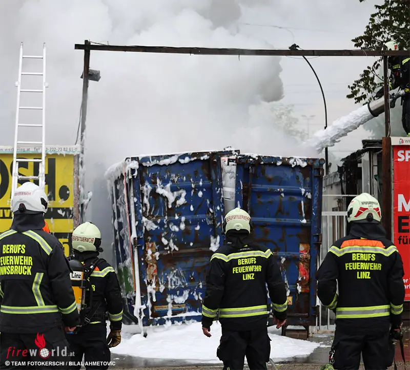 LINZ (OÖ): Gegen Mittag kam es am 1. Oktober 2025 in der Wiener Straße in Linz zu einem Brand in einem mit Schrott gefüllten Metallcontainer.