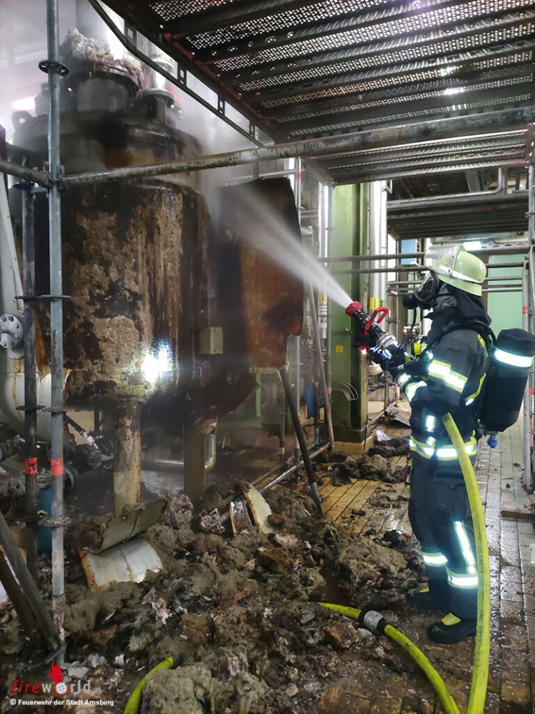 Vor Ort rückten sowohl die städtische Feuerwehr als auch die Betriebsfeuerwehr des Unternehmens aus. Insgesamt waren rund 70 Einsatzkräfte beteiligt, darunter vier Atemschutztrupps, die mit C-Rohren gegen die Flammen vorgingen. Die Isolierung des betroffenen Behälters wurde entfernt und gezielt abgelöscht, um eine Ausbreitung des Feuers auf angrenzende Produktionsbereiche zu verhindern.