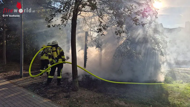 D: Holzunterstand und Dixi-Klo brennen in Südheide
