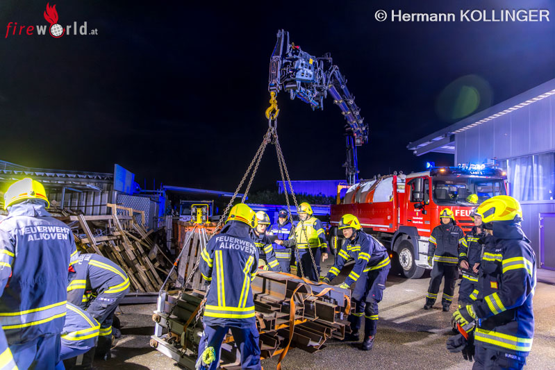 Nach etwa einer halben Stunde war das Szenario soweit abgearbeitet, dass man zur Nachbesprechung übergehen konnte. Ein nicht unähnlicher Einsatz beschäftigte die Feuerwehr Alkoven im Dezember 2008. Ein damals junger Mann wurde unter umstürzenden Metallteilen begraben und dabei sehr schwer verletzt. Ein heikler Rettungseinsatz war dabei erforderlich.