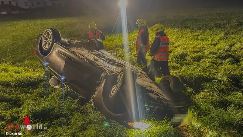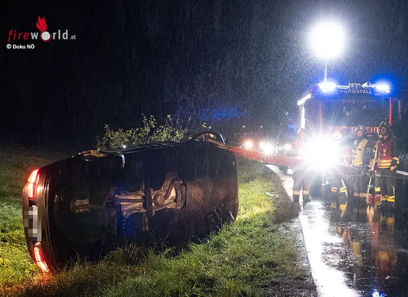Das Fahrzeug blieb auf dem Dach in einem Graben liegen. Der Lenker konnte das Unfallwrack selbstständig verlassen und wurde vom Roten Kreuz Scheibbs erstversorgt und anschließend zur weiteren Abklärung in ein Krankenhaus gebracht. Die Feuerwehr Purgstall rückte mit vier Fahrzeugen und insgesamt 20 Mitgliedern zum Einsatz aus.