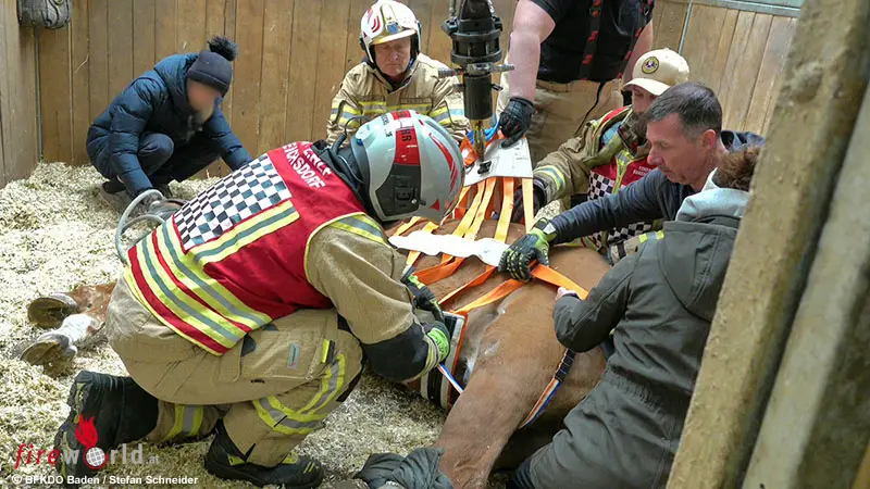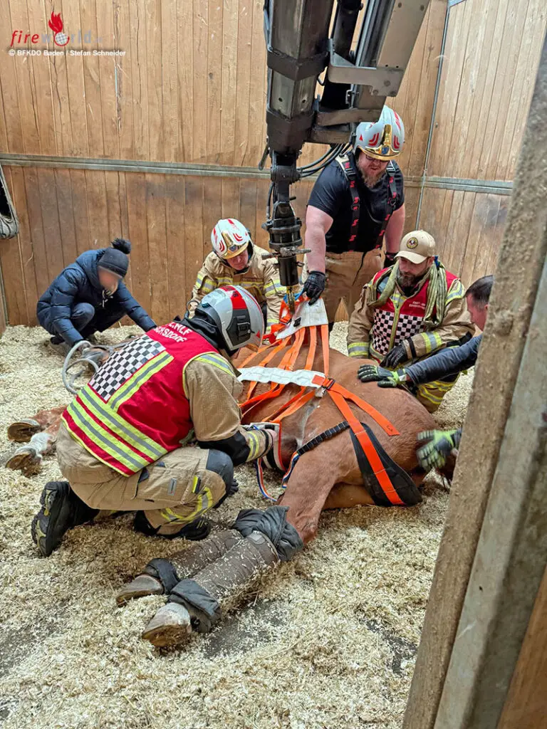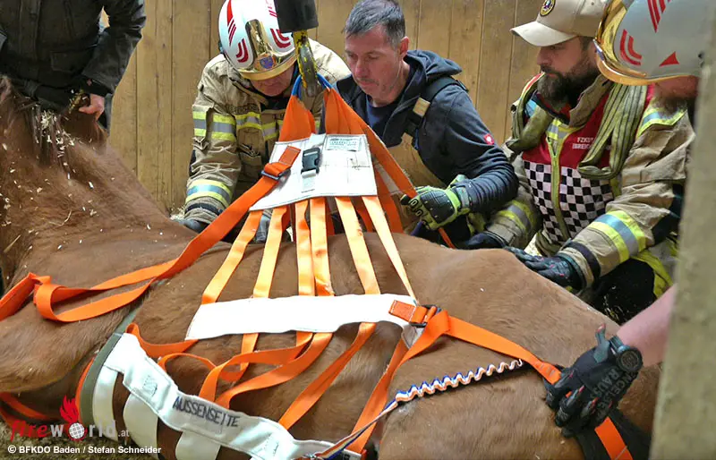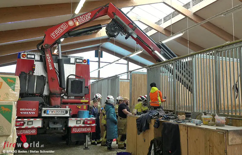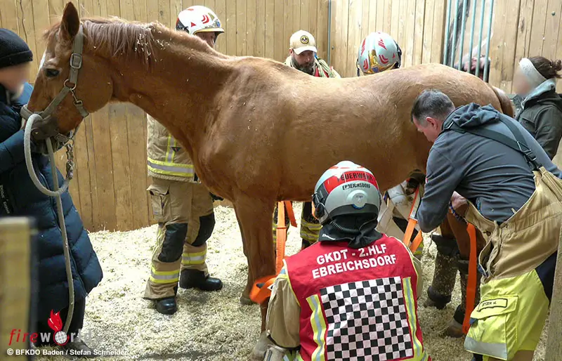 Nö: Pferd benötigte am Welttierschutztag die Hilfe der Feuerwehr Ebreichsdorf → mit dem SRF ins Stallgebäude
