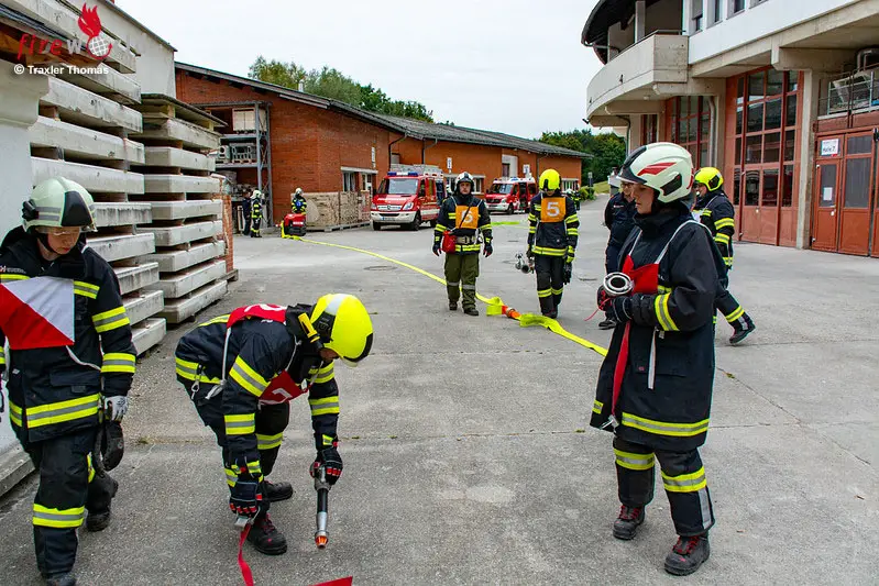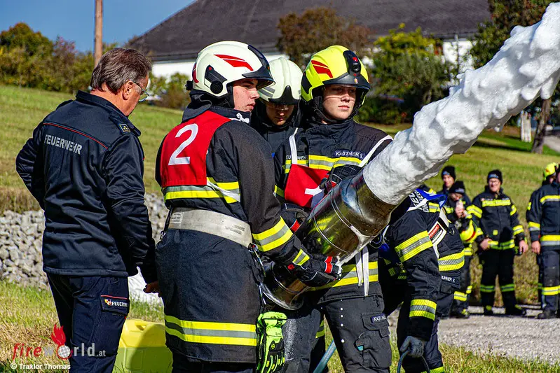 Lehrgangsleiter Hauptbrandinspektor d.F. Bernhard Binder konnte mit seinen acht Ausbildnern an der Bezirks-Feuerwehrschule, der OÖ Bauakademie in Lachstatt, im Lehrsaal und im praktischen Unterricht das bereits im Vorfeld erlernte Wissen noch einmal vertiefen und festigen.