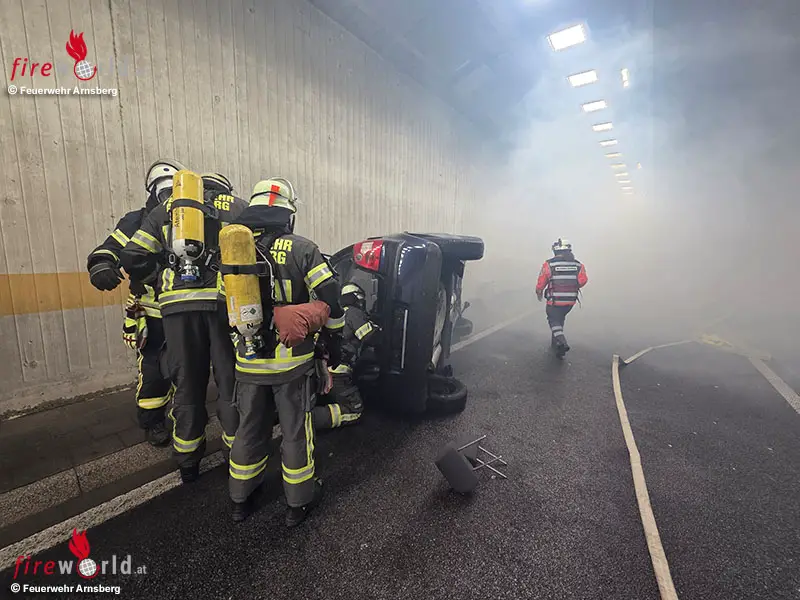 Tunnelwand geprallt und stand entgegen der Fahrtrichtung auf der rechten Spur. Starke Rauchentwicklung erschwerte die Sicht. Der Fahrer war bewusstlos im Fahrzeug eingeschlossen, eine weitere Person lag hinter dem Pkw auf der Fahrbahn. Rund 70 Einsatzkräfte waren beteiligt. Der Löschzug Arnsberg übernahm die Menschenrettung in Fahrtrichtung Meschede, während der Löschzug Meschede-Freienohl die Brandbekämpfung in Fahrtrichtung Werl koordinierte.