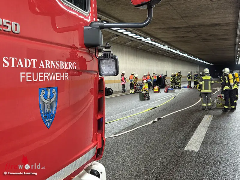 ARNSBERG (DEUTSCHLAND): Am Montagabend, dem 6. Oktober 2025, wurde die Bundesautobahn A46 bei Arnsberg zum Schauplatz einer groß angelegten Rettungsübung. Um 20:51 Uhr erfolgte die Alarmierung der Einsatzkräfte, die zunächst von einem schweren Verkehrsunfall im Tunnel ausgingen.